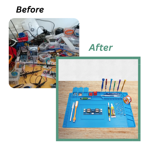 It keeps your workspace clean, organized, and efficient, reducing clutter and saving time during repairs.